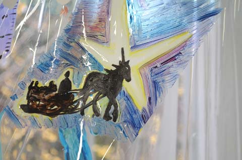 じっとたたずんで、その透明なビニールの山々に映る景色を見ています。