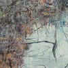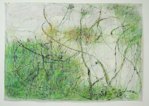 そこに線を主体に作画してゆく。所々、印刷の文字が微かに透けて見える。