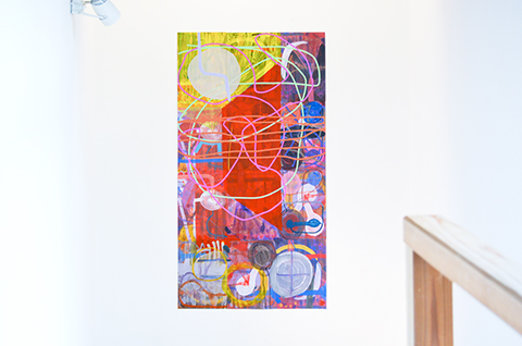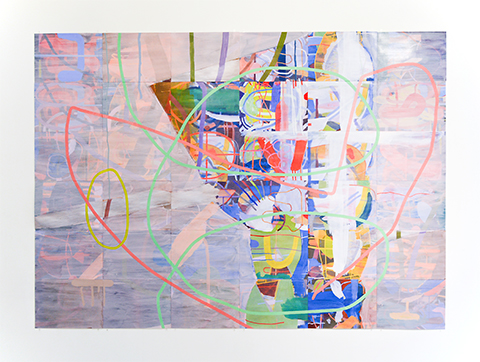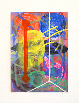 私の絵画はいつもイメージの途上の最中にあって、 そこに観る者の生の途上の視線が重なると絵画と しての出現を果たすことになる。 その姿はいつも完結する満足感を欠乏させたまま次の場所へ推移し ようとする予兆を孕んでいる。 だから私はそれらの作品を流動の絵画と呼ぶことにしたのだった。 流 動の絵画はこれまでの出所もこれからの行き先も地続きのままにあえて放逐してあるから、その流れ の只中に身を投じれば自ずと制作の場が推進できるよう意図されている。 そこで成されるのはその画 面の中から私に向かってやってくる新たな「意味」 のようなものを発生させることである。 それは私 の絵画という場がなければ発生しなかったはずのそれ以前にはなかった 「生まれたての意味」 のよう なもので、 私の絵画の中に見い出された時点で初めて与えられるような思いもかけないものたちなの である。
