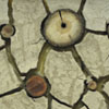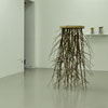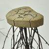 ひびが走る乾燥させた土と、枝を組み合わせた作品です。