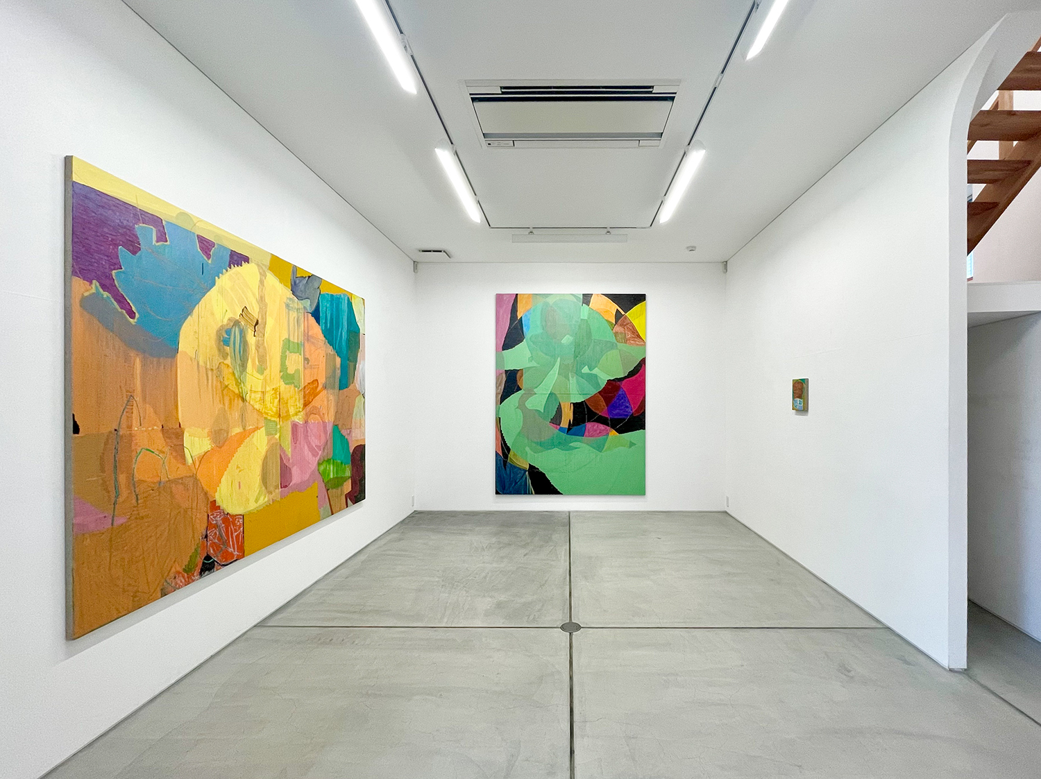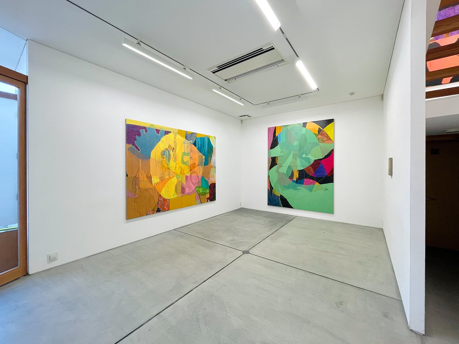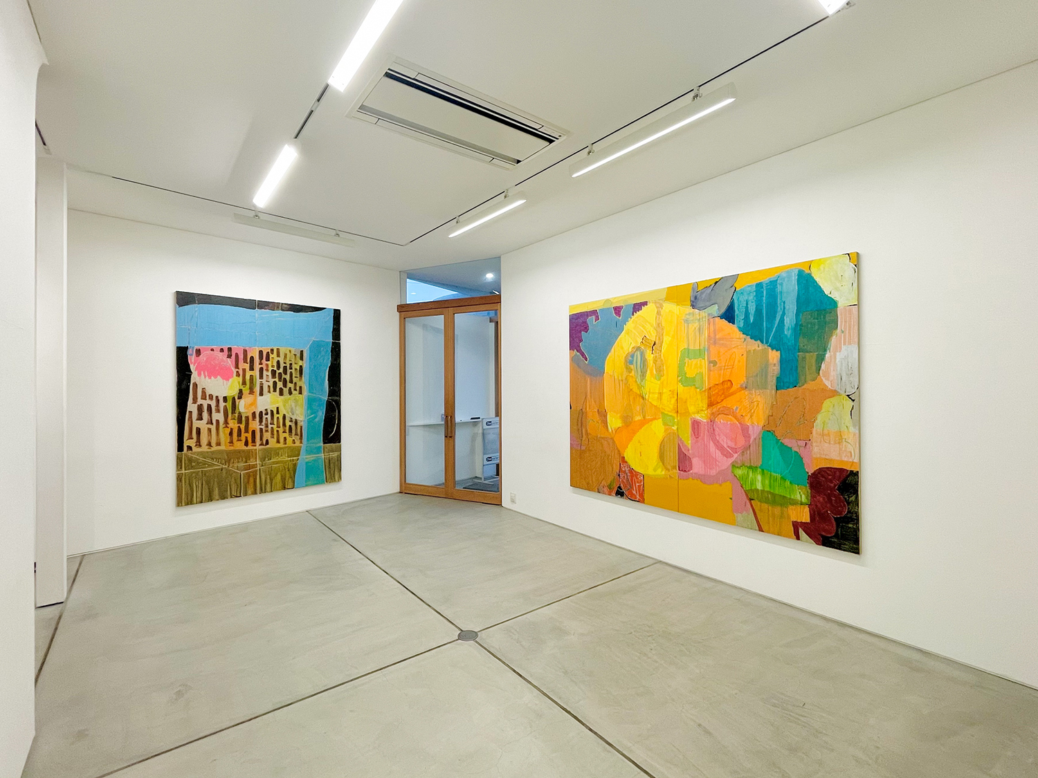 本展「ばからくう」は大型作品を中心に、ギャラリー全体を絵画で包み込むような空間として構成しています。この試みは、マーク・ロスコが 1958 年に「シーグラム壁画*」を制作した際の、「絵画ではなく場を作った」という言葉にインスピレーションを得ています。ロスコは抽象表現主義の画家でしたが、フォーマリズムには傾倒せず、独自の神秘思想やギリシャ神話などの宗教的要素を作品に取り入れました。しかし、展示空間に「場」を生成するという考えは、ともすると絵画から自立性を奪い、それらを環境装飾へと近づけてしまう危険性をはらんでいます。絵画はそのとき、鑑賞者を自らの前に立ち止まらせる力を失い、むしろ彼らを止めどない歩行へといざなうことになるでしょう。わたしたちは、シーグラム壁画でロスコが目指した「場」という理想郷に、安易に足を踏み入れるべきではないのかもしれません。