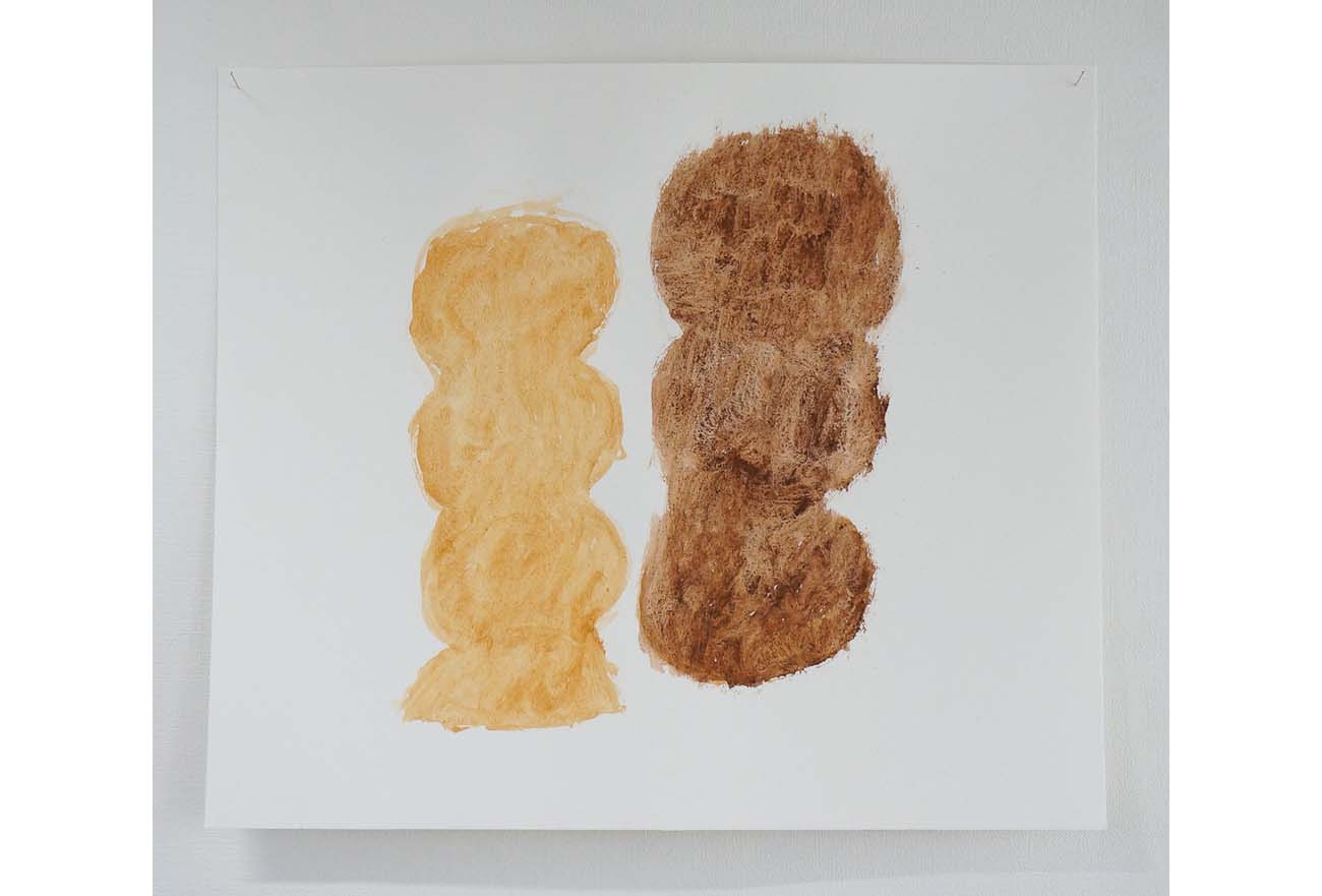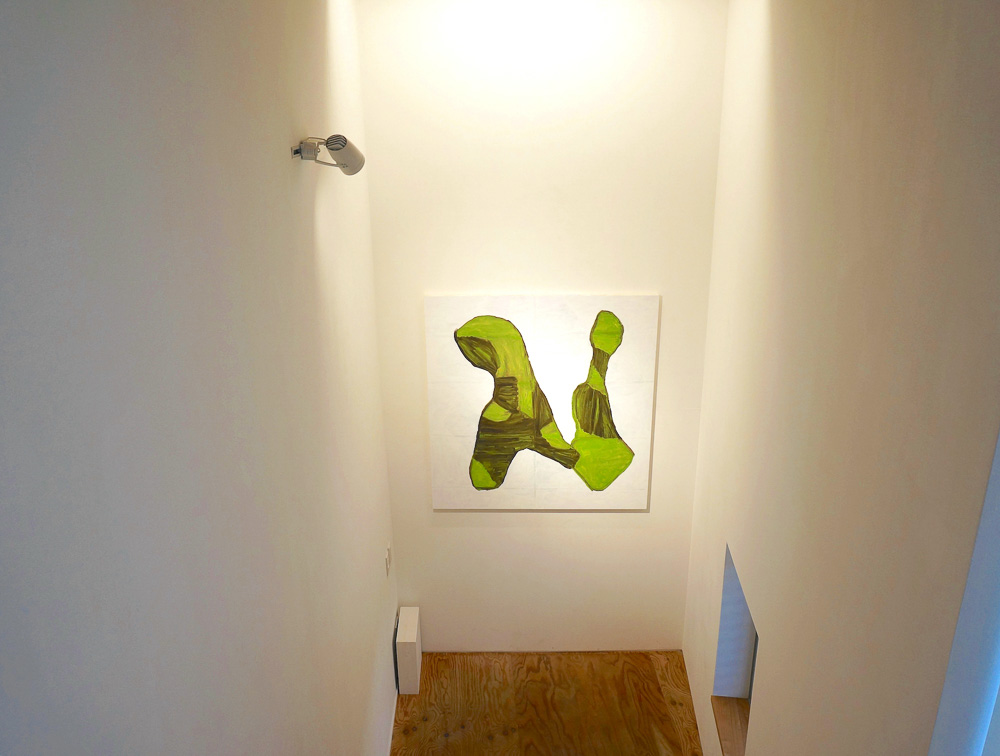 朝から降りしきる雨は午後に上がり、家に帰る道はぬかるんでいた。今のように整備された道などはほとんどなく、至る所に水溜りができている。通学路も決まってはいない。だからむかしの少年たちは、朝は花が咲くように大きく傘を広げ、帰りは棒のように丸めた傘で地面に筋を引きながら、好きな道を帰った。少し大きめの水たまりがあると、其処にしゃがみ込んで新たな筋を増やし、堤防を作り、池も作った。そんな寄り道と落書きをしながら帰った。その後、大人になった彼等は"すじとたまり"のホルモン焼きを楽しんでいる。これはこれで素晴らしいひと時かも知れない。隣の2kwGの空間では"すじとたまり"の展覧会がひらかれている。彼らの作品はロードローラでならされることもなく、独特の筆づかいで描かれ、冒頭の少年の落書きのようなおもむきがあり、ある懐かしさを感じさせる。そして、其処にはそこはかとない彼らのテーマが聞こえてくる。それは、具象でもなく、抽象でもない、拒絶でもなく、否定でもない、「否認」である。類型化に対する「否認」である。ただ、見る者に絵画そのものに留まってほしいのかも知れない。一切の言語化を否認して、また、終着駅に到着することも否認して、何処までも絵画を実現するために、しかし、そんなことは一切、認める気もなく、ただ描き続けている彼らの後ろ姿に「すじとたまり」が浮かびあがってくる。